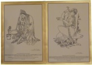 ‘Darvish’ and ‘Wisdom’ : These correlating illustrations incorporate typically Persian illustrations and verses in English. ‘Darvish’ depicts his care for a simple but beautiful flower blossoming in a pot, while he calls for love and freedom, completed 19 March 2003. ‘Wisdom’ displays the flower grown into beautiful lady, responding to Darvish’s call by offering him to drink from the water of knowledge, completed 2 June 2003. |