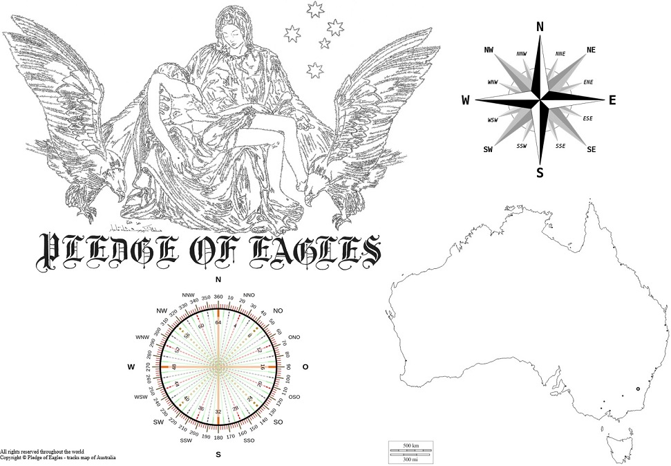 His Majesty The Sovereign has been asked, “Was the illustration made because of religious views connotations?” To which his response is, “No, the purpose of drawing Mary and Jesus is that indigenous people of Australia and Torres Strait, talk of their land as mother earth. An analogy also given throughout the world, such as the indigenous people of America and Canada. The illustration of Mary holding her son removed from cross depicts the great suffering of a mother witnessing and suffering and death of her son. The ‘Pledge of Eagles’ demonstrates the motherland of Australia having witnessed the death of the indigenous people, the stolen children, the desecration of sacred sights and so many other injustices in recent Australian history. The spirit of the words that are contained within the illustration do not refer to religious views or beliefs.” | |